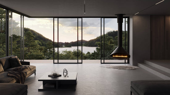 Available in 4 fuel options and 4 finishes. 360° rotation system. Flue can be customised to various lengths and ceiling slope.