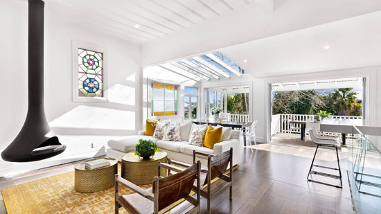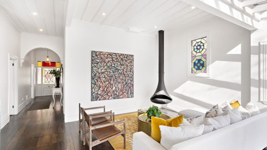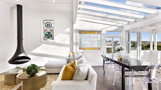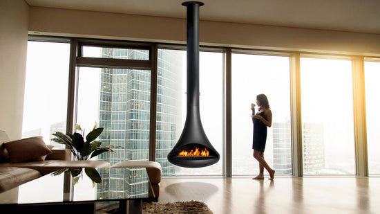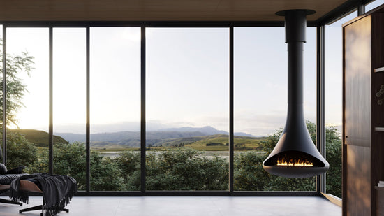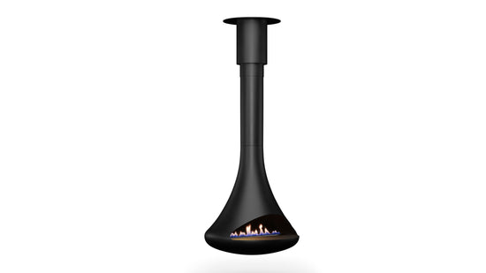 Available in 4 fuel options and 4 finishes. 360° rotation system. Flue can be customised to various lengths and ceiling slope.