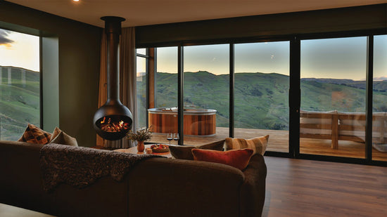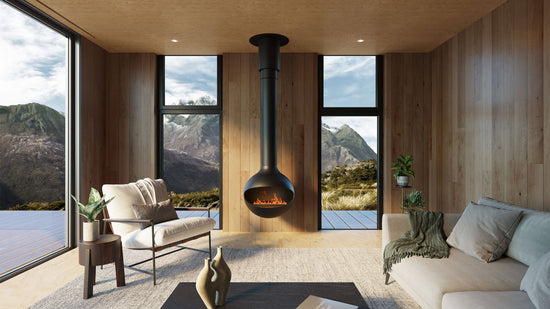 Available in 4 fuel options and 4 finishes. 360° rotation system. Flue can be customised to various lengths and ceiling slope.